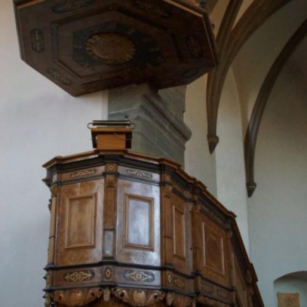 Sehenswert in der Kirche ist zunächst die Kanzel, die 1702 durch Meister S. Honegger aus Kirsch- und Nussbaumholz mit Lindenholzintarsien angefertigt wurde.